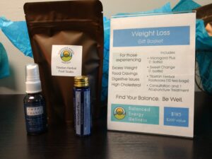 The Weight Loss Gift Basket includes Microgard +, a wonderful herbal formula that not only helps with digestive problems, but regulates the gut microbiota, stimulates an increase in digestive enzymes and helps break down proteins, fats and sugars, affecting the whole metabolism and helping to reduce body weight. I’m combining that with Sweet Change to help get that sweet tooth under control. It’s a mouth spray that eliminates sugar and food cravings and supports healthy blood sugar levels. Additionally my Tibetan Herbal Footsoaks will increase your blood circulation as if you have been exercising, will reduce pain and give you more energy. This combo will give you a great start toward meeting your body weight goals in the New Year.